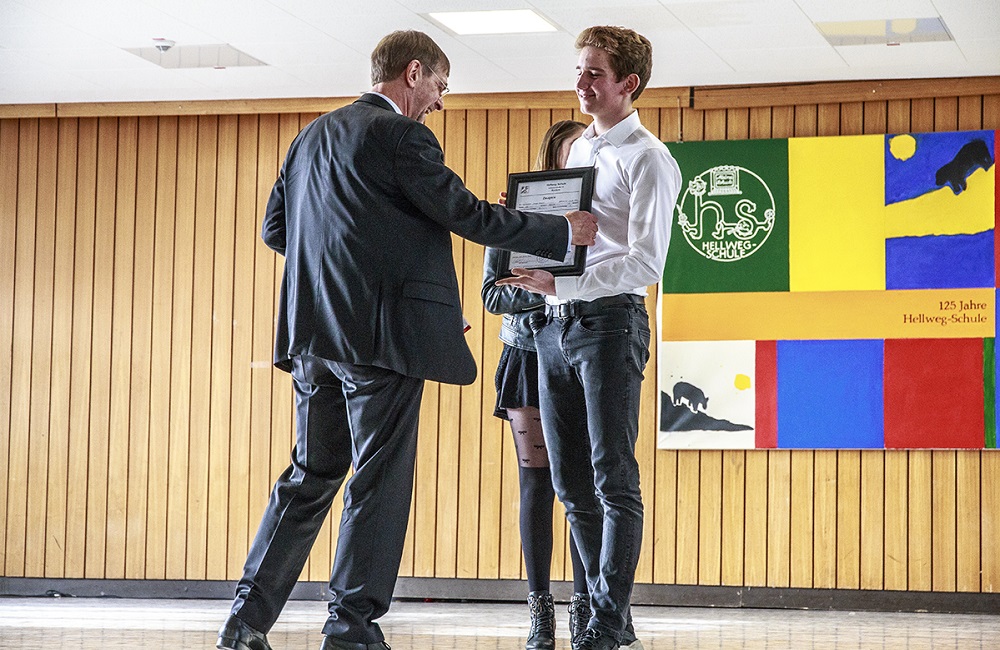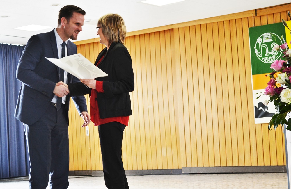 Die Hellweg-Schule bedankt sich nochmals bei ihrem ehemaligen Schulleiter Herrn Mengler und blickt nun zuversichtlich einer neuen Ära mit ihrem neuen Schulleiter Herrn Dr. Balliet entgegen.