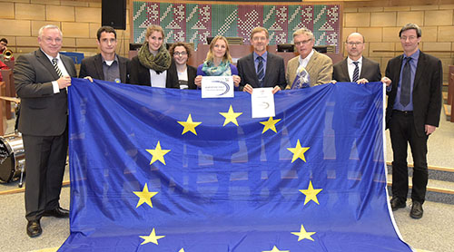 Am 16.11.2016 wurde der Hellweg-Schule im Düsseldorfer Landtag der Titel „Europaschule“ verliehen, worauf besonders Herr Moser jahrelang sehr engagiert hingearbeitet hat. Vom NRW-Europaminister Lersch-Mense wurden dem Schulleiter und seiner Begleitung die Urkunde, die Europafahne und das Europa-Schild überreicht.