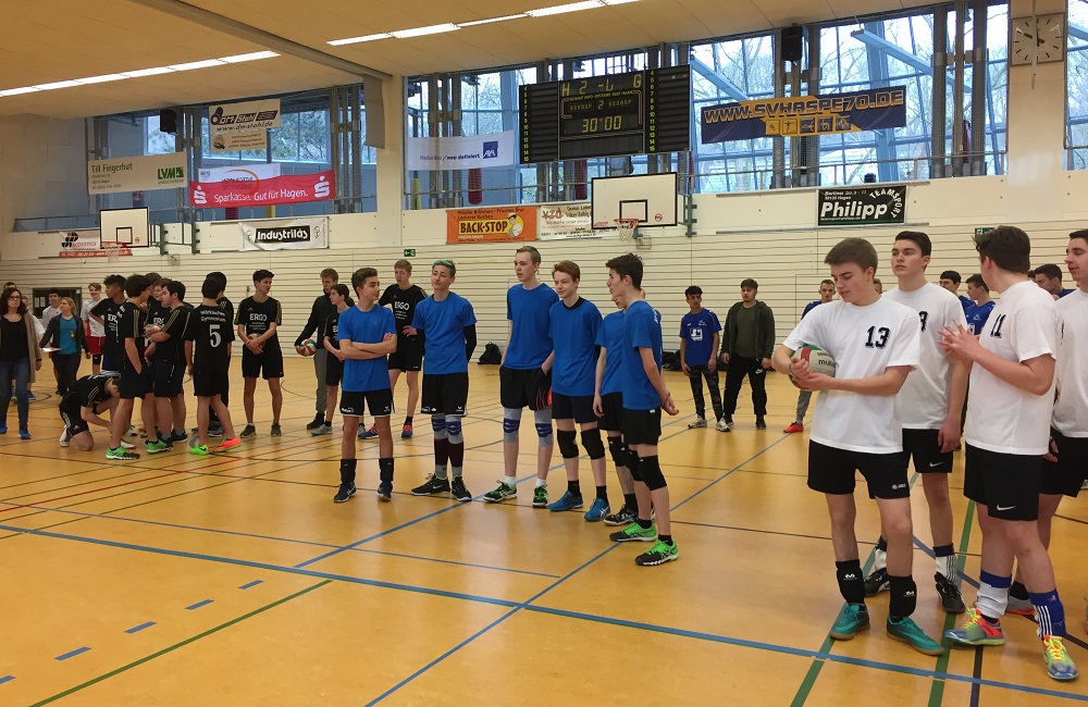 Leider fallen nun kurzfristig für die Landesmeisterschaften zwei Leistungsträger verletzungsbedingt aus: Mittelangreifer Fynn Schönstedt (gebrochener Daumen) und Zuspieler Finn Eusterfeldhaus (Außenbandriss) können das Team nur von der Bank aus unterstützen, sodass am kommenden Mittwoch wieder nur sechs Feldspieler zur Verfügung stehen. Deswegen brauchen die Jungs alle Unterstützung, die sie kriegen können. Dementsprechend drückt die gesamte Hellweg-Schule für die Landesmeisterschaften am Mittwoch, 21.02.2018, in Marl alle Daumen!! Dort stehen als Gegner das Freiherr-von-Stein-Gymnasium Münster und das Carl-Humann-Gymnasium Essen bereit, die beide mehrere Kaderspieler mitbringen. Ziel ist es, "die Großen" mit Teamgeist und Spaß am Spiel "richtig zu ärgern" und die ein oder andere Überraschung herauszuholen!