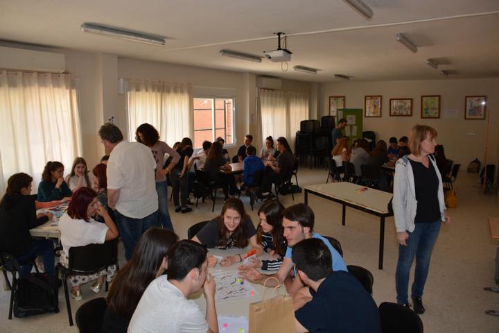 Treffpunkt war um 8 Uhr an der Schule. Dort haben wir dann in Gruppen unsere passend zum Thema Chemie selbst gestalteten Gesellschaftsspiele ausprobiert. Jede Nation hat sich ein anderes Spiel ausgesucht. Es war schön zu sehen, was die anderen in der Zeit die nach dem letzten Treffen vergangen war erarbeitet haben.