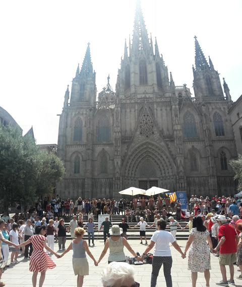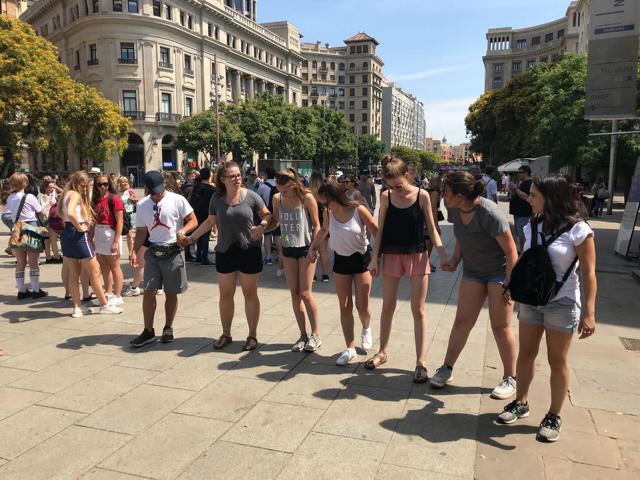 Sonntag führten wir eine Umfrage durch, bei der wir die Katalanen zu ihrer Meinung über die Unabhängigkeitsbestrebungen Kataloniens sowie über ihre Einstellung zum Sprachgebrauch (castellano vs. catalán) befragten. Danach schauten wir uns den traditionellen Tanz, die Sardana, auf dem Platz vor einer Kathedrale an. Viele haben sich diesen von Einheimischen zeigen lassen und begeistert mitgetanzt.